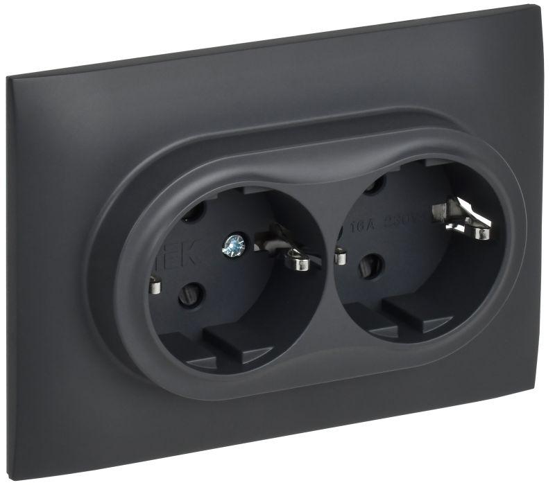 SK-R24-16-K48-F | Розетка 2-м SKANDY 16А с заземл. защ. штроки в сборе SK-R07T титан IEK