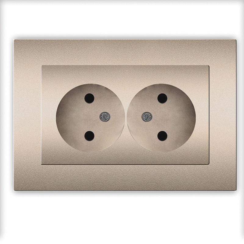 A0102-Br | Розетка 2-м СП Афина 16А IP20 без заземл. в сборе шампань Universal