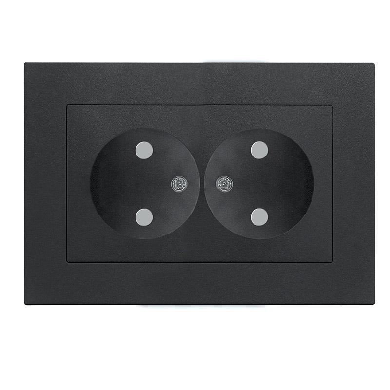 A0048-Gr | Розетка 2-м СП Афина 16А IP20 без заземл. защ. шторки в сборе графит Universal