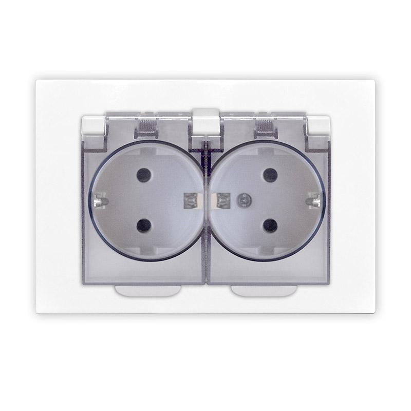 A0031 | Розетка 2-м СП Афина 16А IP20 с заземл. c прозр. крышкой в сборе бел. Universal