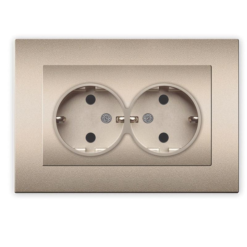 A0128-Br | Розетка 2-м СП Афина 16А IP20 с заземл. в сборе шампань Universal