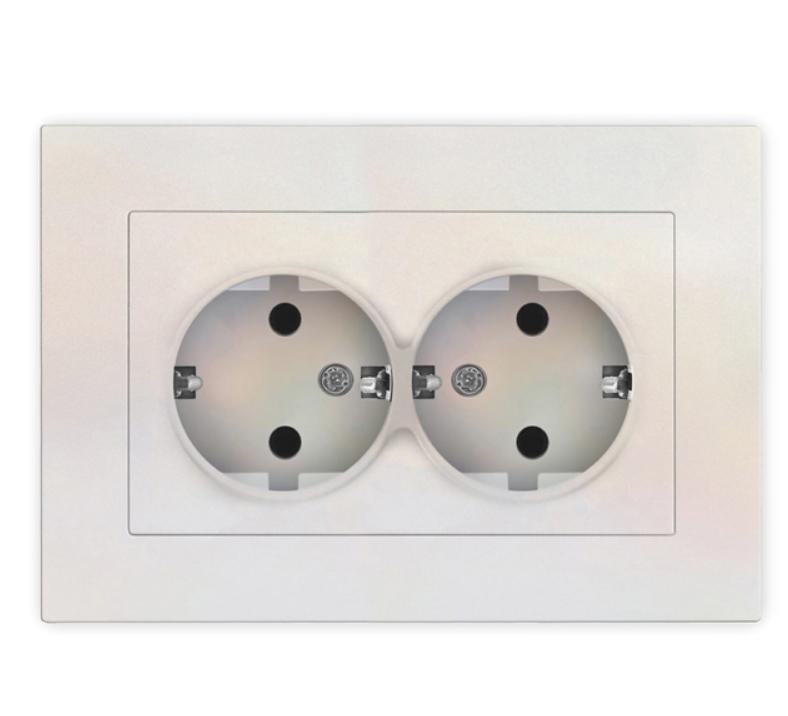 A0128-OBr | Розетка 2-м СП Афина 16А IP20 с заземл. в сборе жемчуж. Universal