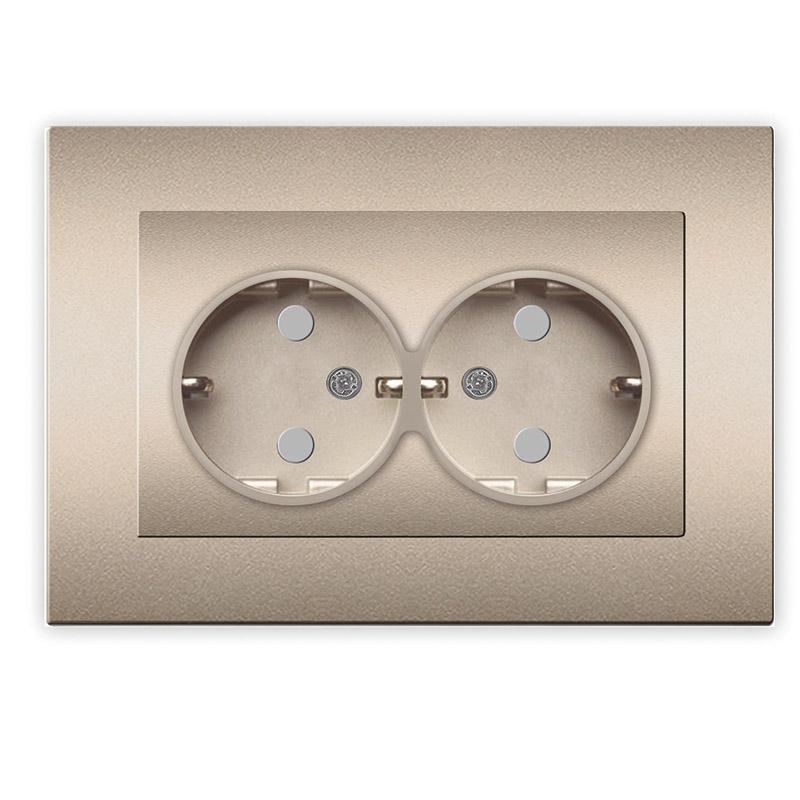 A0050-Br | Розетка 2-м СП Афина 16А IP20 с заземл. защ. шторки в сборе шампань Universal