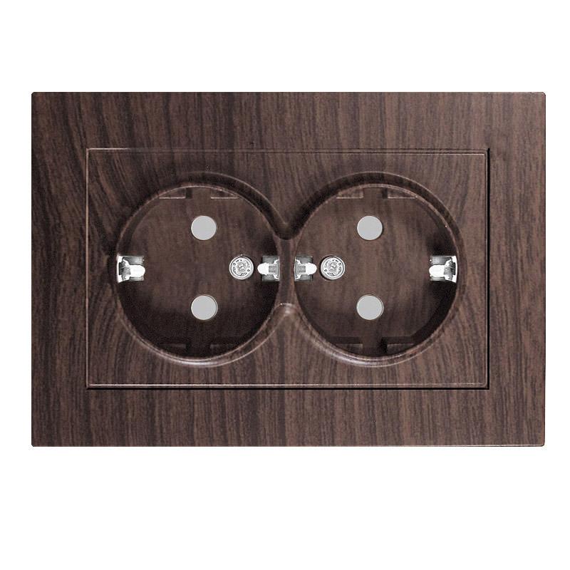 A0050-V | Розетка 2-м СП Афина 16А IP20 с заземл. защ. шторки в сборе венге Universal