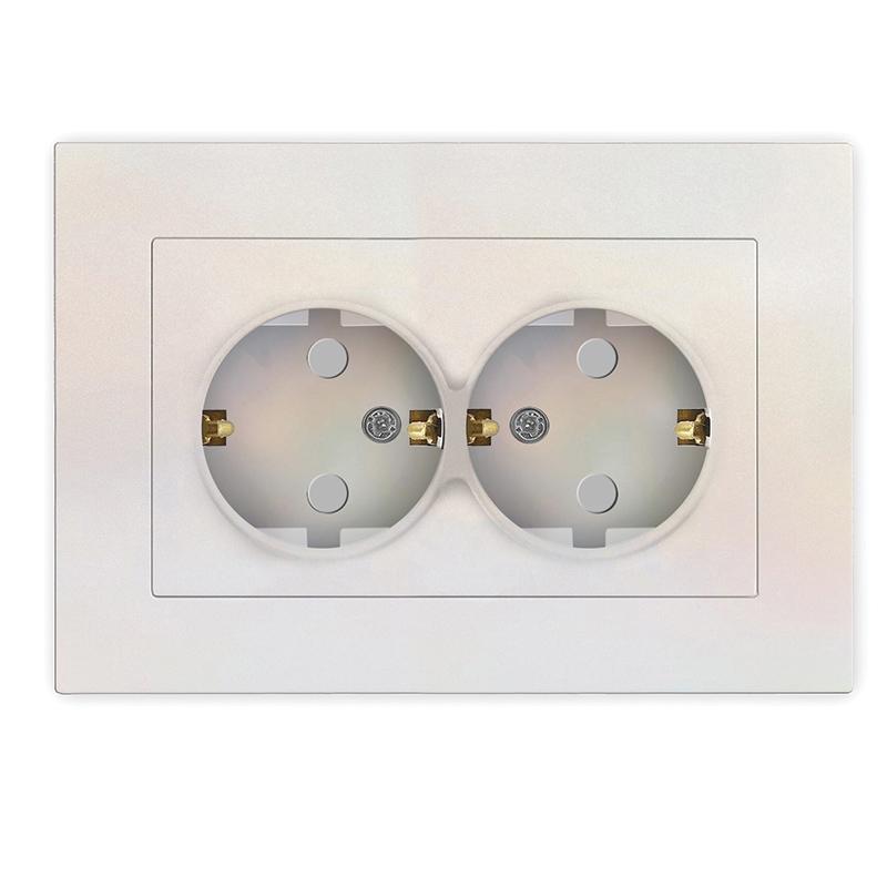 A0050-OBr | Розетка 2-м СП Афина 16А IP20 с заземл. защ. шторки в сборе жемчуж. Universal