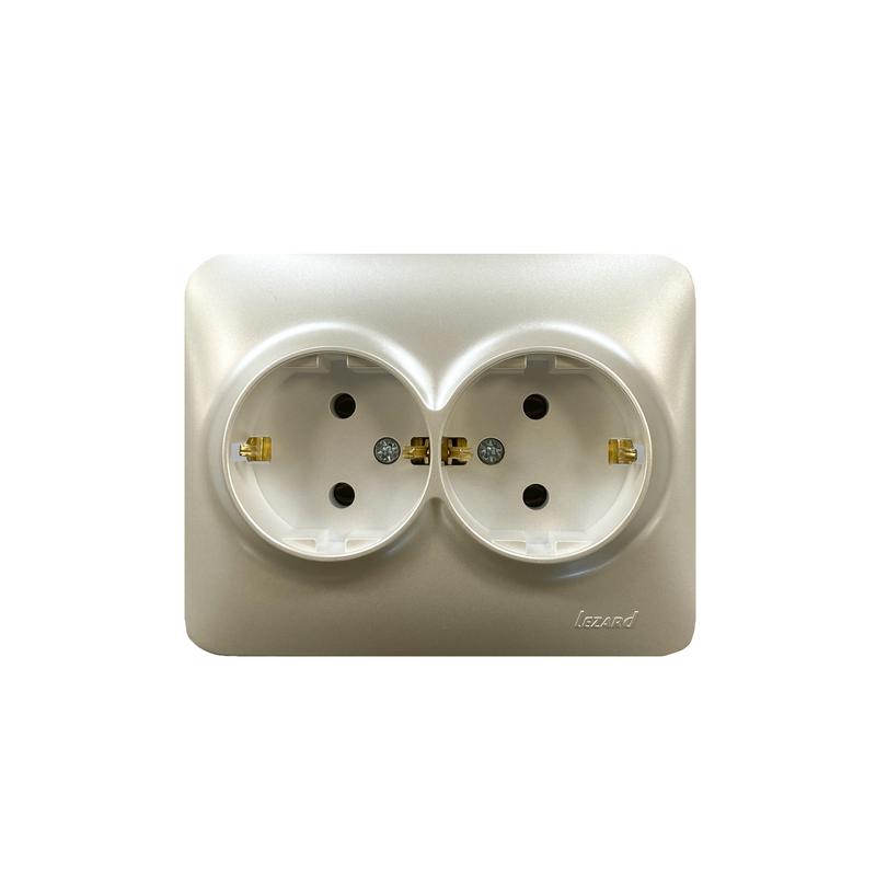 7081-3000-127B | Розетка 2-м СП ASTI 16А IP20 с заземл. термопласт жемчуж./бел. перламутр. LEZARD