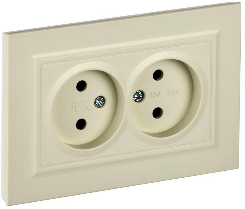 BR-R20-10-K10-F | Розетка 2-м СП BRITE РС12-2-БрКр 10А в сборе без заземл. без защ. шторок беж. IEK