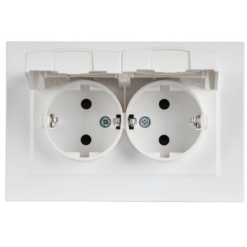 BR-R26-16-44-K91-F | Розетка 2-м СП BRITE РСбш12-3-44-БрАБ 16А IP44 в сборе с крышкой арктич. бел. IEK