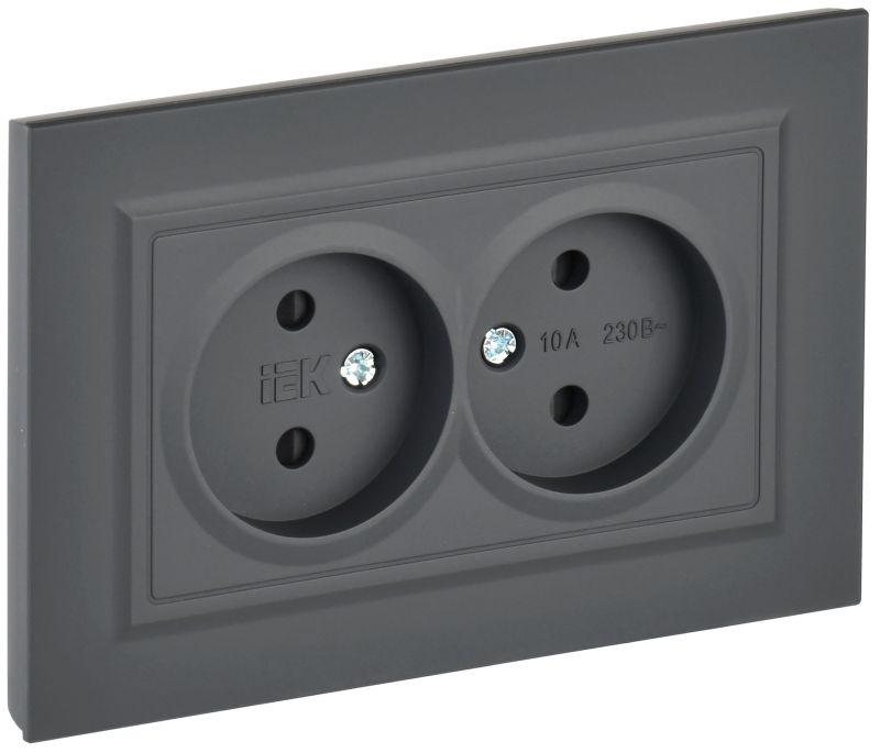 BR-R23-10-K53-F | Розетка 2-м СП BRITE РСш12-2-БрГ 10А в сборе без заземл. защ. шторки графит IEK