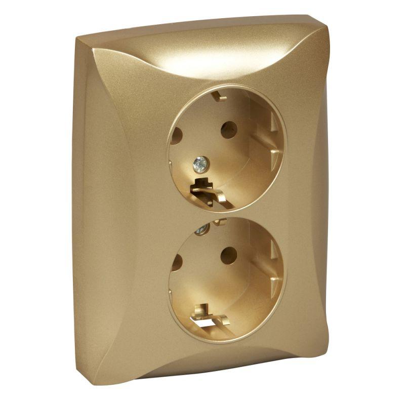 WDE000424 | Розетка 2-м СП Дуэт 16А IP20 с заземл. шампань SchE