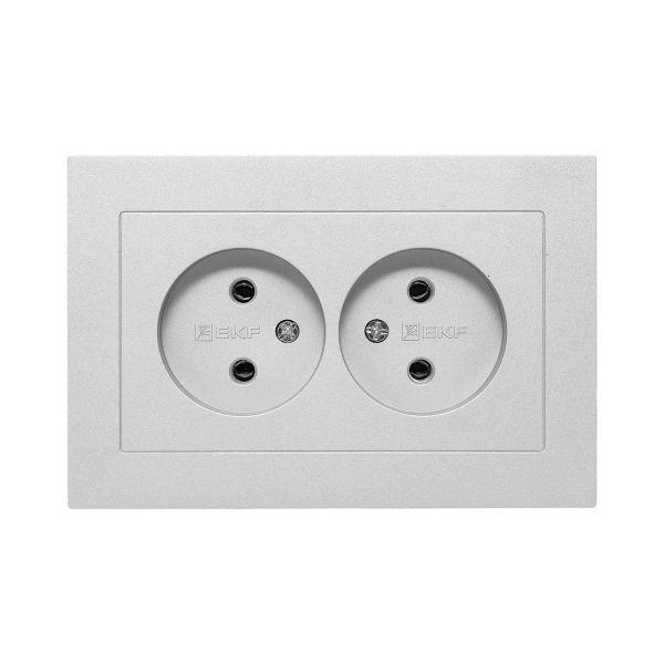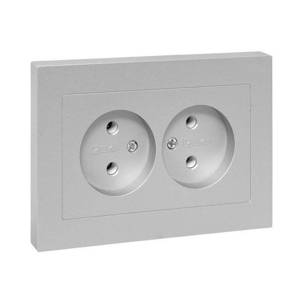 UP1-SOA-200 | Розетка 2-м СП Эпика 16А без заземл. без защ. шторок с рамкой механизм алюм. EKF