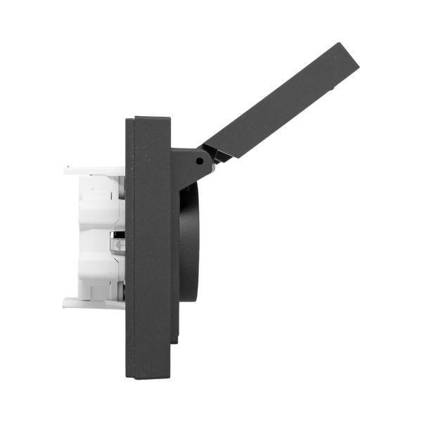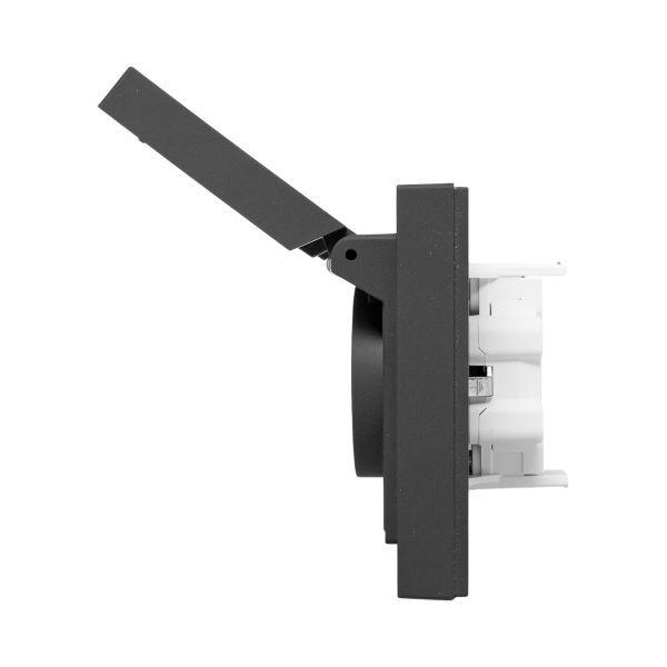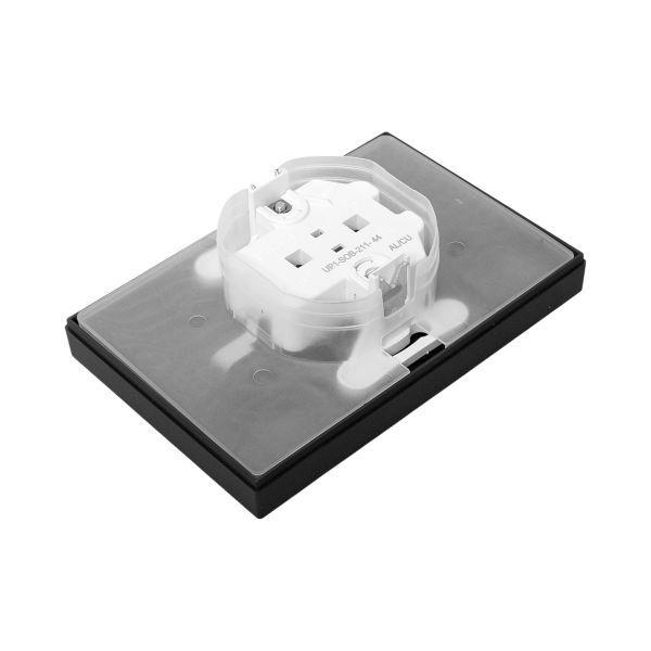Степень защиты IP44 обеспечивает безопасность использования во влажных и пыльных помещениях, таких как кухня или ванная комната. Защитные шторки открываются только при одновременном нажатии на оба отверстия, предотвращая попадание посторонних предметов и обеспечивая дополнительную безопасность.