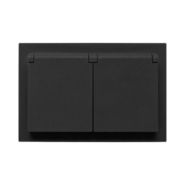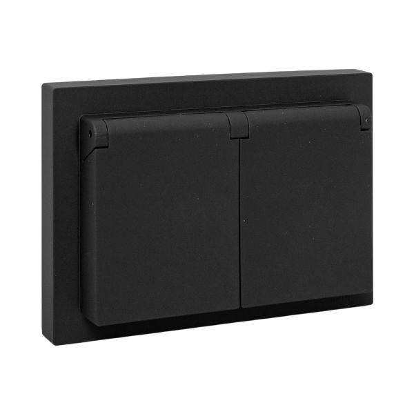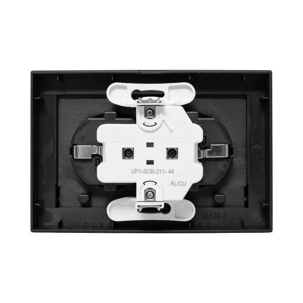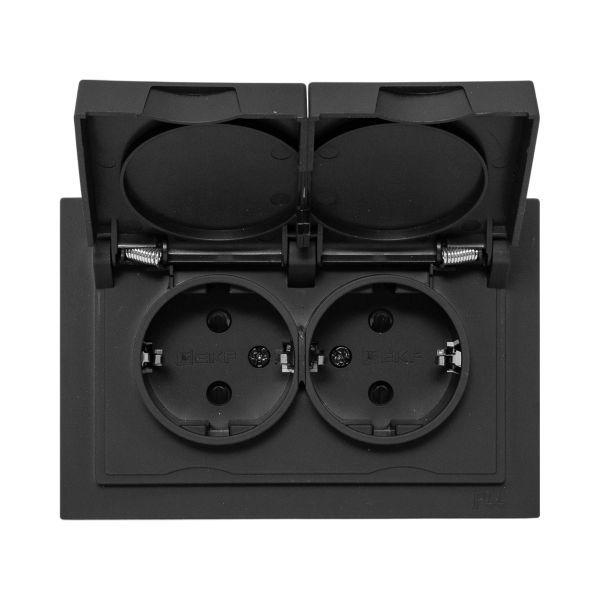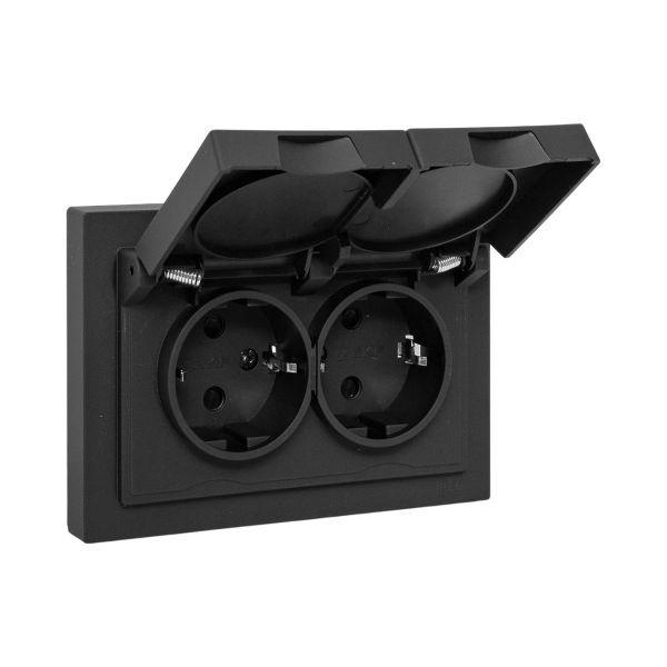 UP1-SOB-211-44 | Розетка 2-м СП Эпика 16А IP44 с заземл. защ. шторки с рамкой с крышками механизм черн. EKF