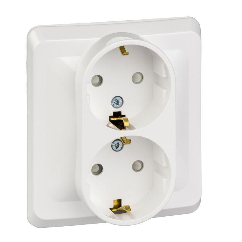 PC16-008B | Розетка 2-м СП Этюд 16А IP20 250В с заземл. защ. шторки бел. SE