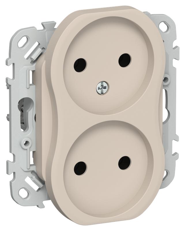 FI-R20-10-1-K88 | Розетка 2-м СП FLITE РС02-1-ФлЛ 10А без заземл. без защ. шторок безвинтовое крепление механизм льняной IEK