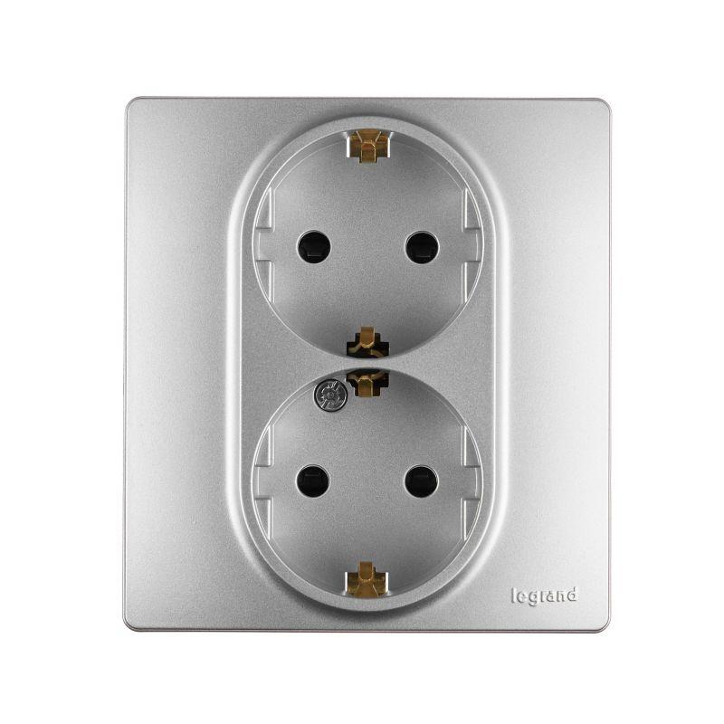 673757 | Розетка 2-м СП Inspiria 16А 250В с заземл. защ. шторки безвинтов. зажимы алюм. IEK