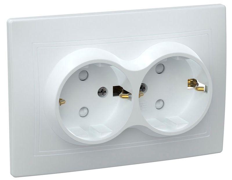 ERK21-K01-16-DM | Розетка 2-м СП Кварта РСш12-3-КБ 16А IP20 с заземл. защ. шторки бел. IEK