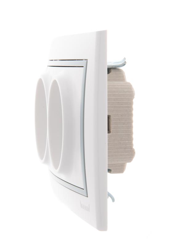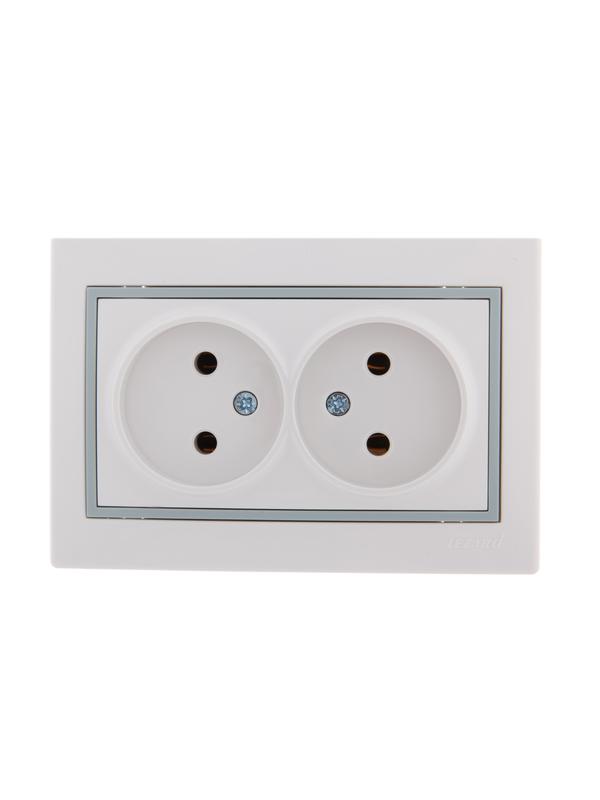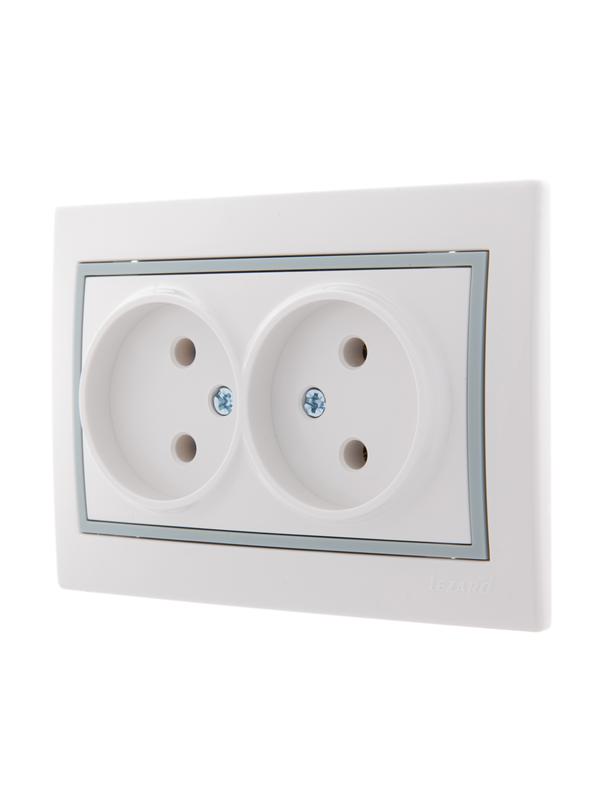701-0215-128 | Розетка 2-м СП Mira 16А IP20 без заземл. с сер. вставкой керамика бел. LEZARD