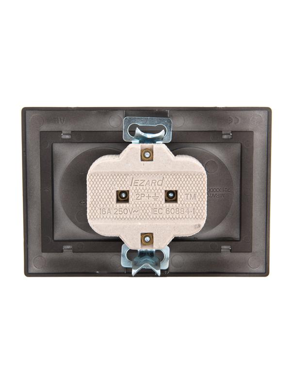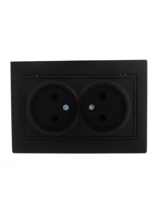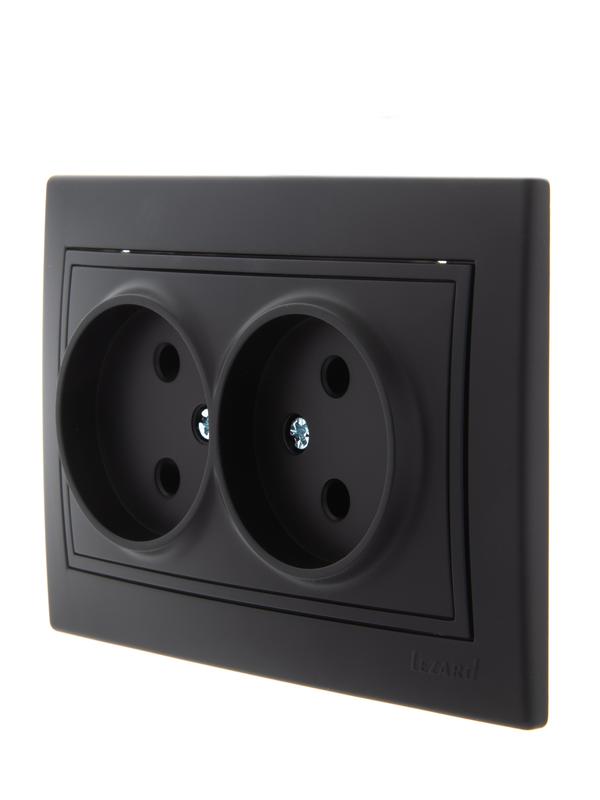 701-4242-128 | Розетка 2-м СП Mira 16А IP20 без заземл. со вставкой керамика черн. бархат LEZARD