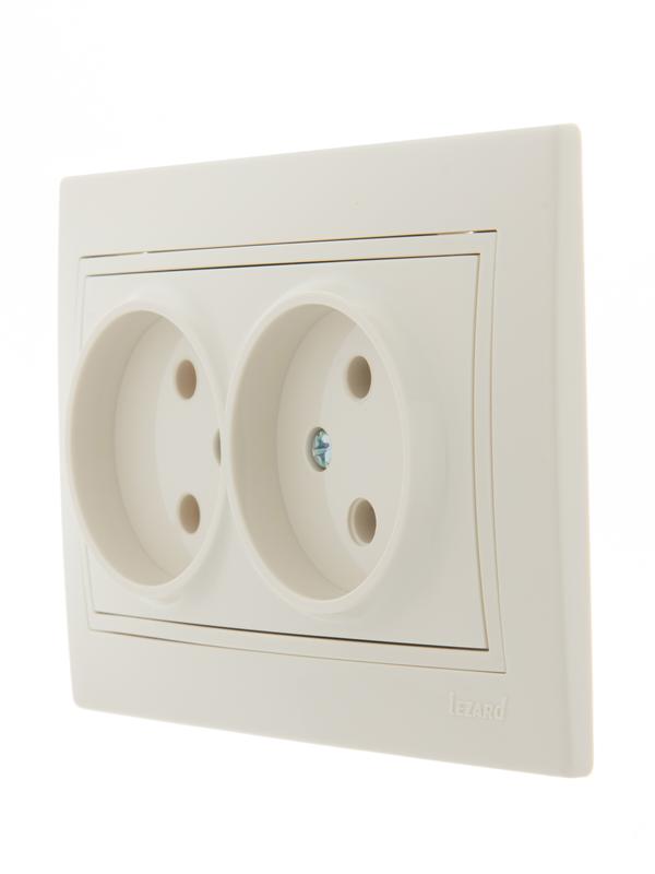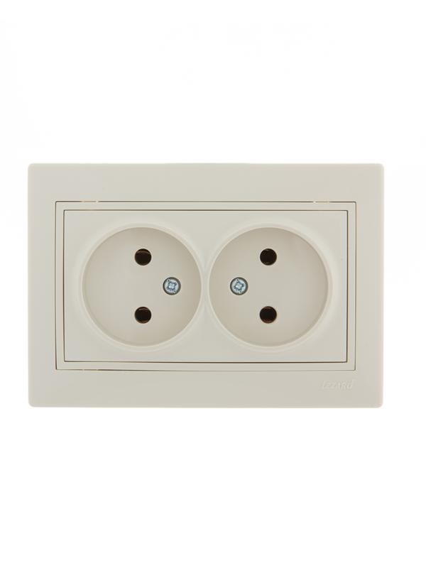 701-0303-128 | Розетка 2-м СП Mira 16А IP20 без заземл. со вставкой керамика крем. LEZARD