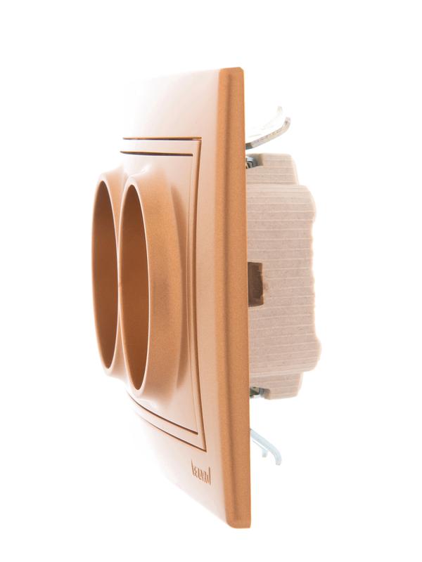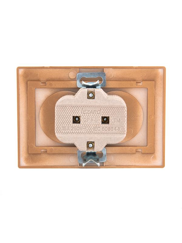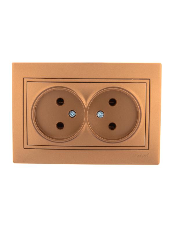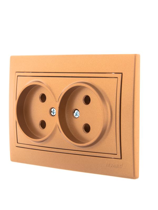 701-1313-128 | Розетка 2-м СП Mira 16А IP20 без заземл. со вставкой керамика зол. метал. LEZARD