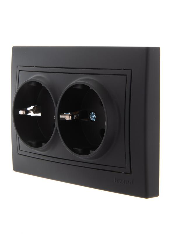 701-4242-127 | Розетка 2-м СП Mira 16А IP20 с заземл. керамика черн. бархат LEZARD