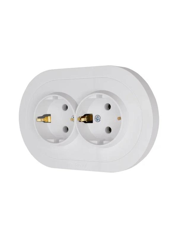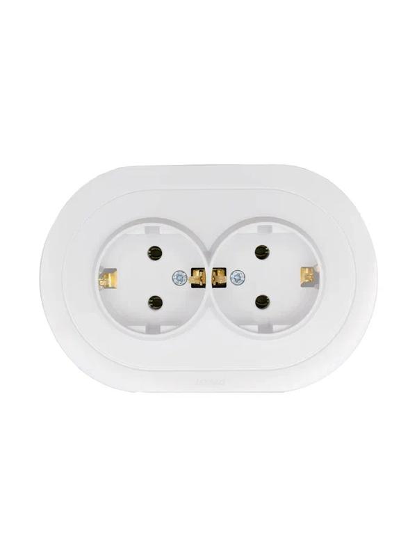 744-0200-127B | Розетка 2-м СП OSEN с заземл. ПБТ круглая механизм бел. LEZARD