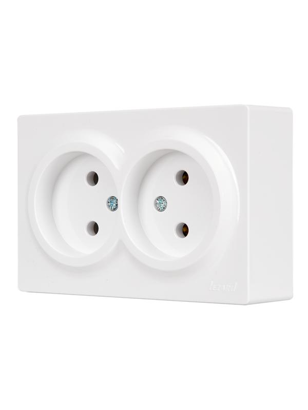 752-0200-128B | Розетка 2-м ОП LETO без заземл. закрытый корпус ПБТ бел. LEZARD