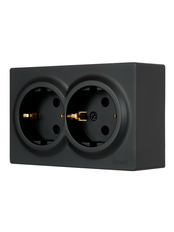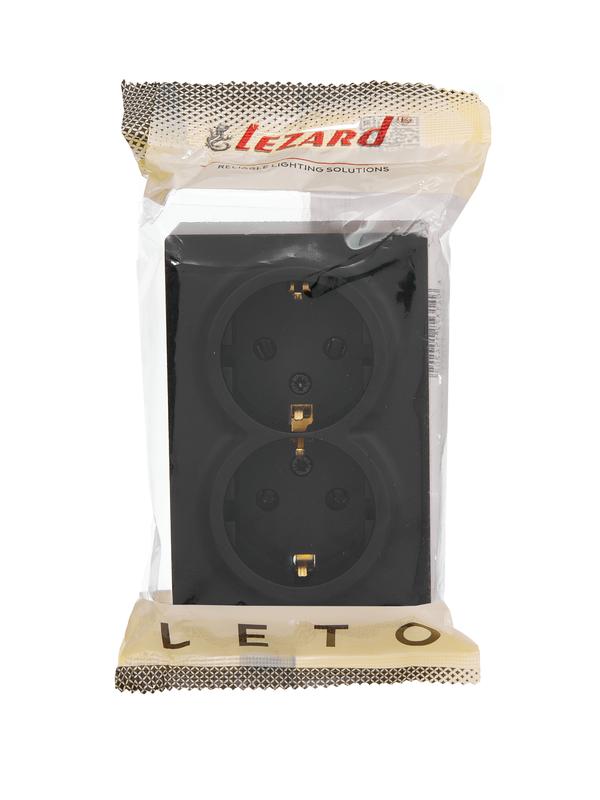 752-4200-127B | Розетка 2-м ОП LETO с заземл. закрытый корпус ПБТ черн. бархат LEZARD