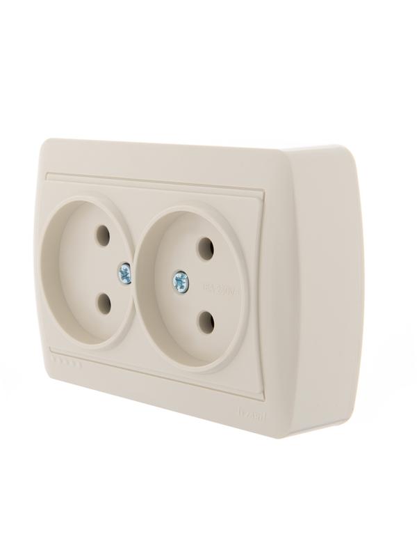 711-0300-128 | Розетка 2-м ОП Demet 16А IP20 без заземл. закрыт. корпус керамика крем. LEZARD