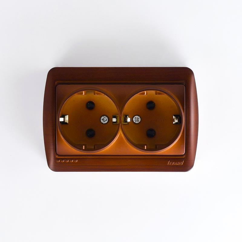 Розетка 2-м ОП Demet 16А IP20 без заземл. закрыт. корпус махагон LEZARD 711-0500-128