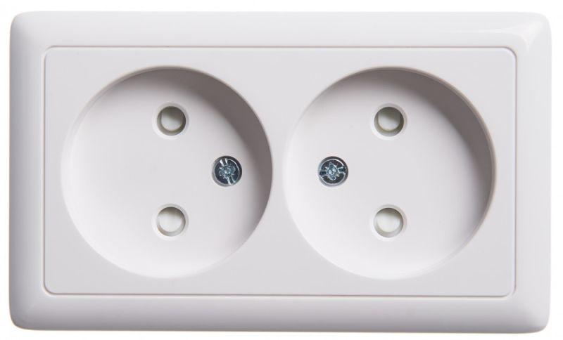 RA16-233I-B | Розетка 2-м ОП Хит 16А IP20 без заземл. защ. шторки с изолир. пластиной бел. SE
