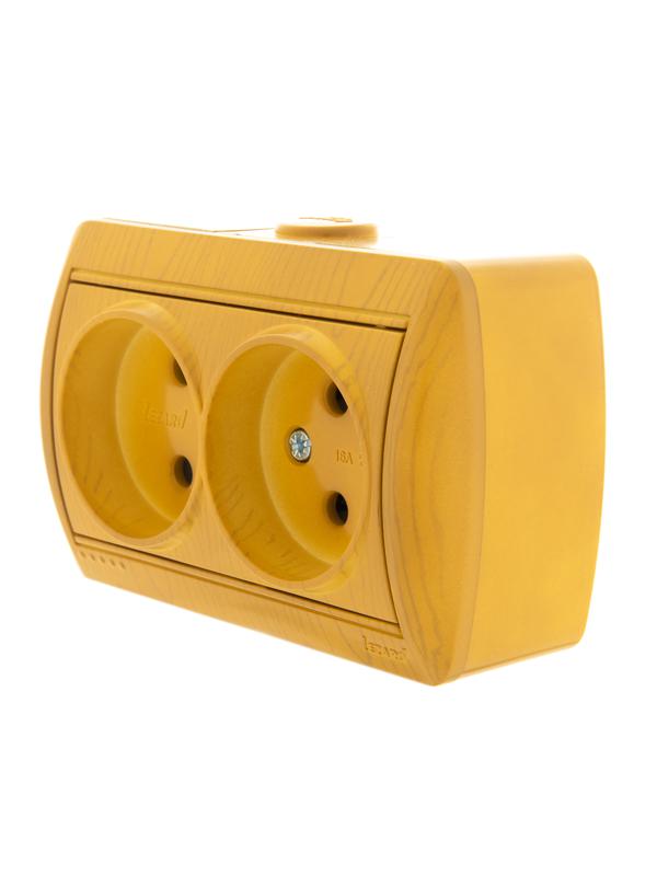 710-0700-128 | Розетка 2-м ОП Nata 16А IP20 без заземл. керамика ольха LEZARD