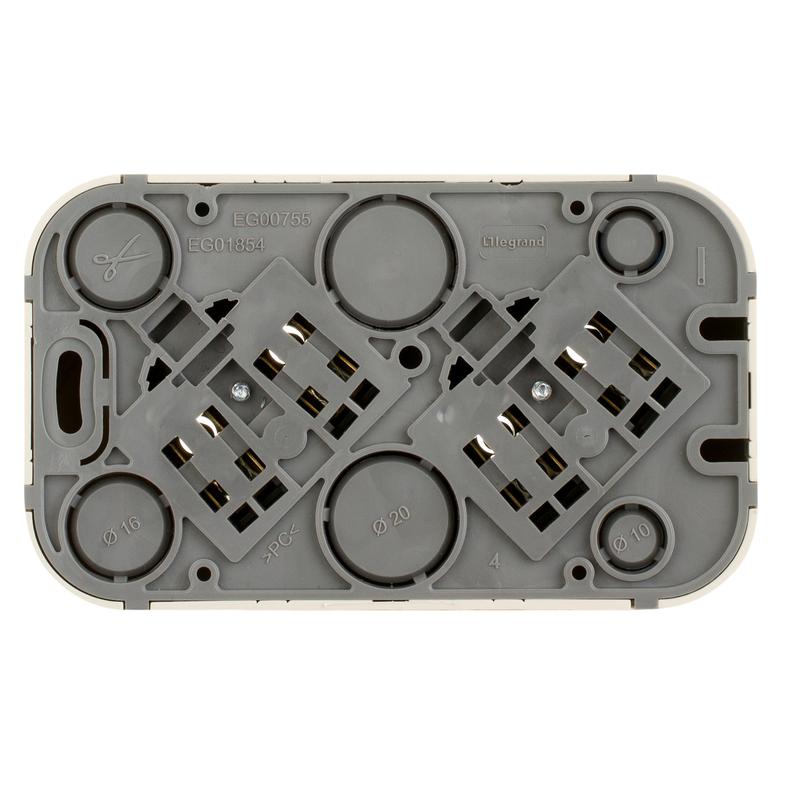 782261 | Розетка 2-м ОП Quteo 16А IP20 250В 2х2P без заземл. без защ. шторок сл. кость Leg