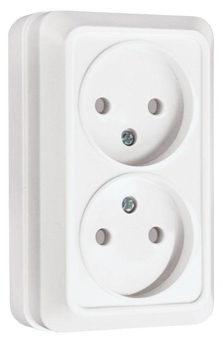 Розетка 2-м ОП Рим 10А IP20 без заземл. защ. шторки бел. EKF ENR10-102-100