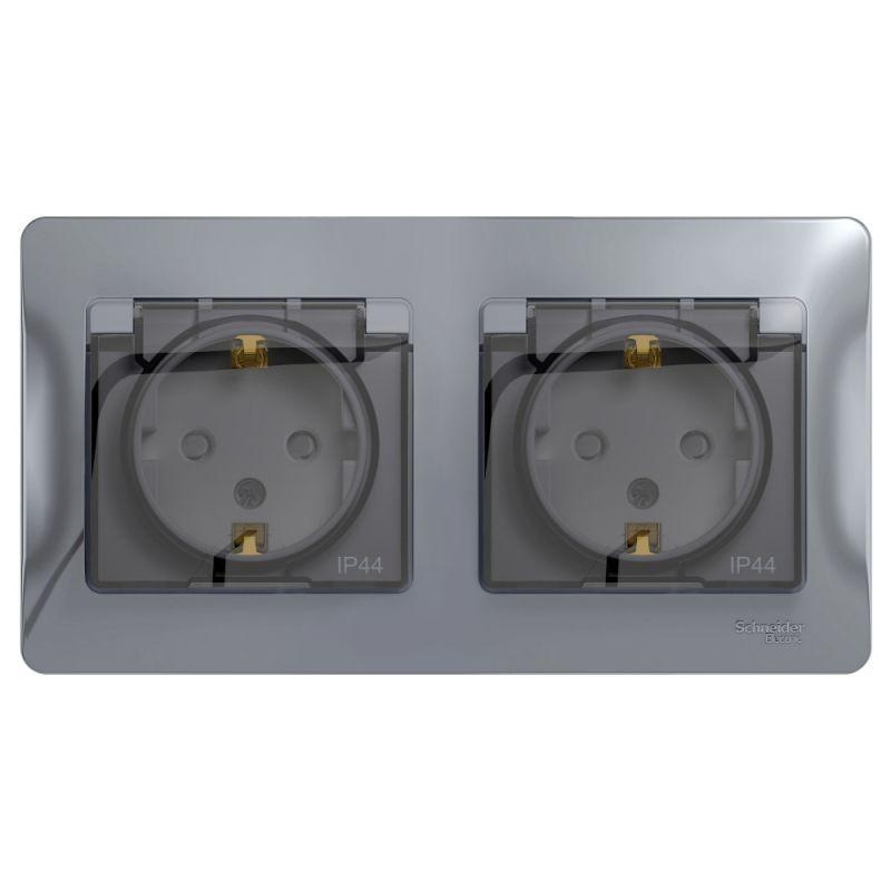 GSL000347 | Розетка 2-м СП 2мод. Glossa 16А IP44 с заземл. защ. шторки в сборе алюм. SE