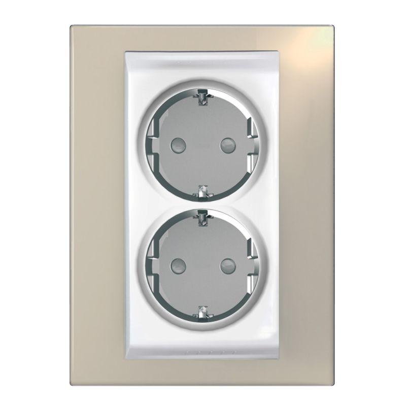 Розетка 2-м СП 4мод. Unica Хамелеон 16А IP20 с заземл. защ. шторки бел./песчан. SchE MGU63.067.867