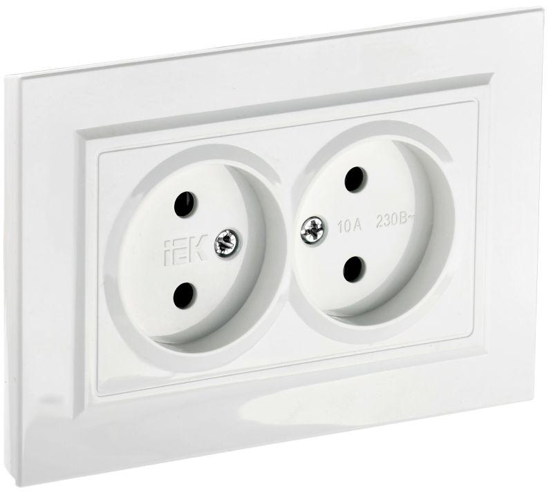 BR-R20-10-K01-F | Розетка 2-м СП BRITE РС12-2-БрБ 10А в сборе без заземл. без защ. шторок бел. IEK
