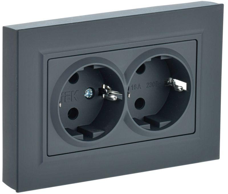 BR-R21-16-K53-F | Розетка 2-м СП BRITE РС12-3-БрГ 16А в сборе с заземл. без защ. шторок графит IEK