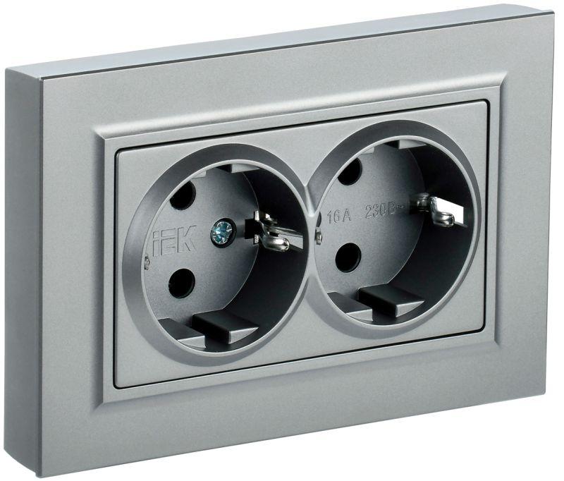 BR-R24-16-K47-F | Розетка 2-м СП BRITE РСш12-3-БрА 16А в сборе с заземл. защ. шторки алюм. IEK