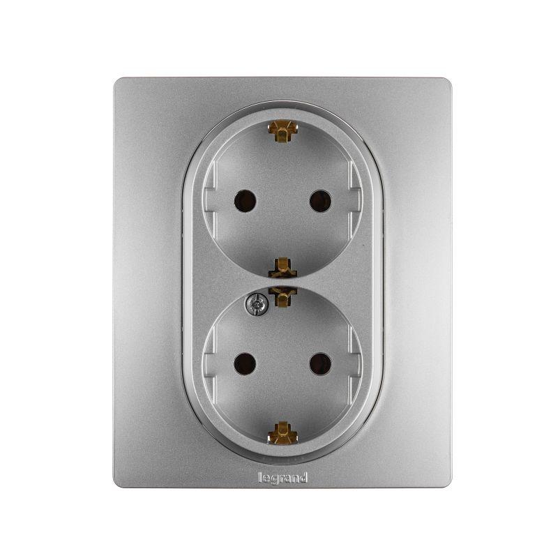 672423 | Розетка 2-м СП Etika 16А IP20 250В 2P+E с заземл. немецк. стандарт винт. клеммы в сборе алюм. IEK
