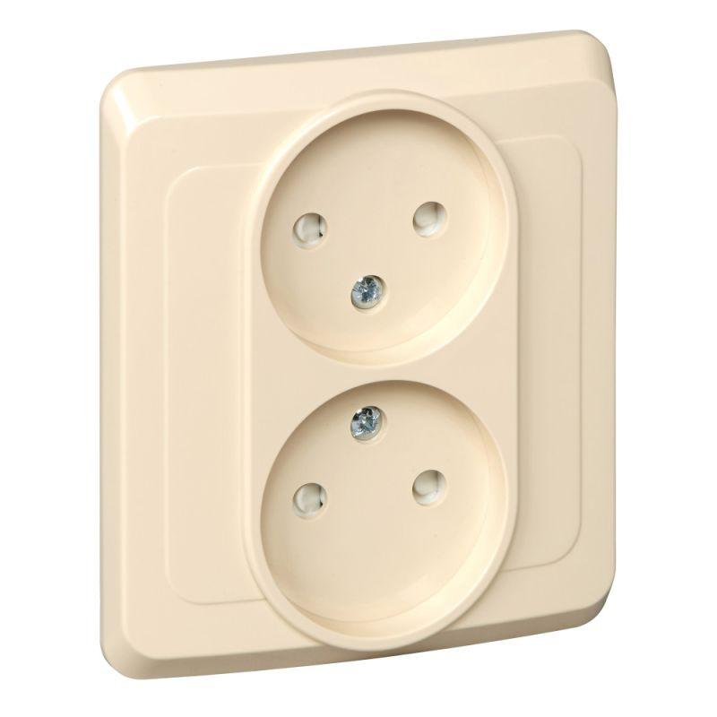 PC16-006K | Розетка 2-м СП Этюд 16А IP20 250В без заземл. защ. шторки крем. SE
