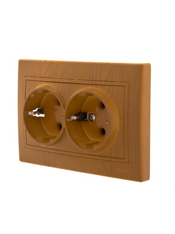 701-0701-127 | Розетка 2-м СП Mira 16А IP20 с заземл. керамика ольха LEZARD