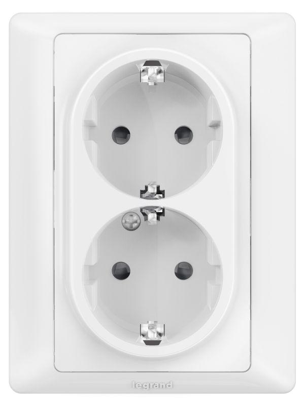 753426 | Розетка 2-м СП Valena Life 16А IP20 250В 2х2P+E защ. шторки безвинтов. клеммы с лицев. панелью механизм бел. Leg