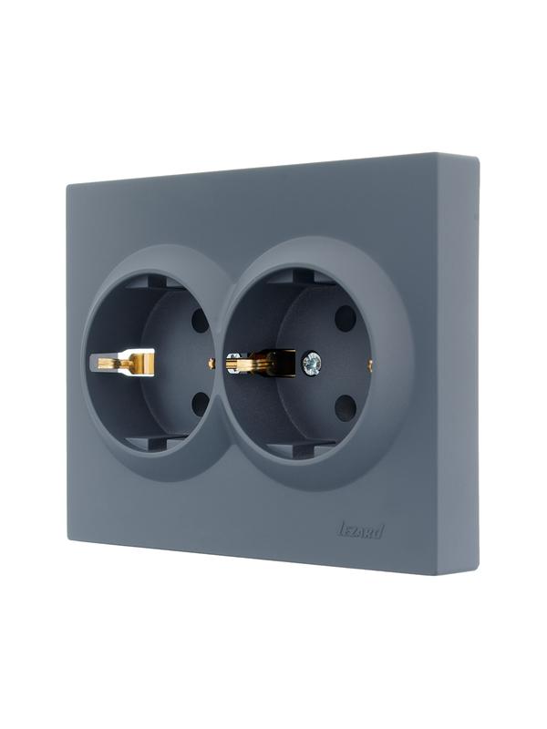 742-3400-127B | Розетка 2-м СП VESNA с заземл. ПБТ графит LEZARD