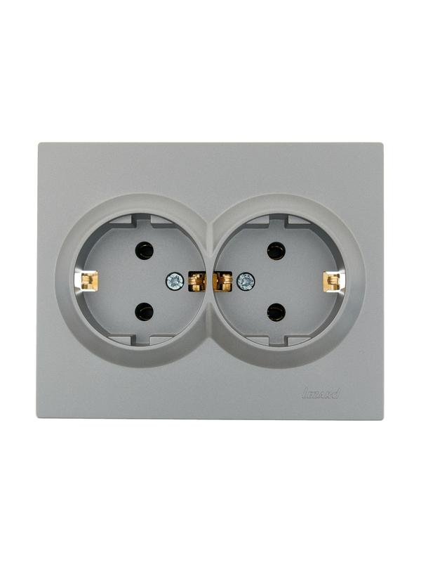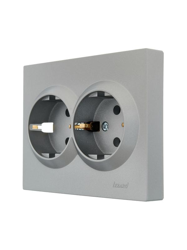 742-3500-127B | Розетка 2-м СП VESNA с заземл. ПБТ платина LEZARD