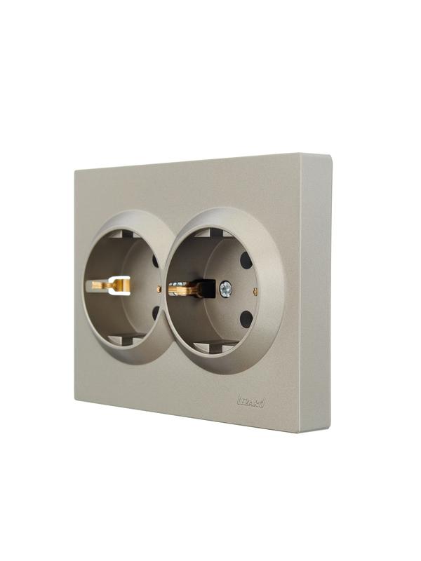 Розетка 2-м СП VESNA с заземл. ПБТ титан LEZARD 742-3700-127B