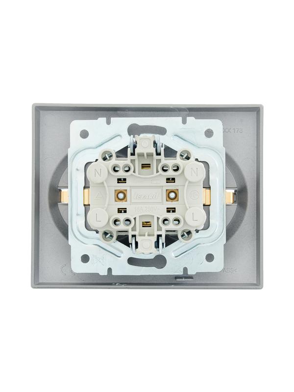 742-3500-178B | Розетка 2-м СП VESNA с заземл. со шторками ПБТ платина LEZARD