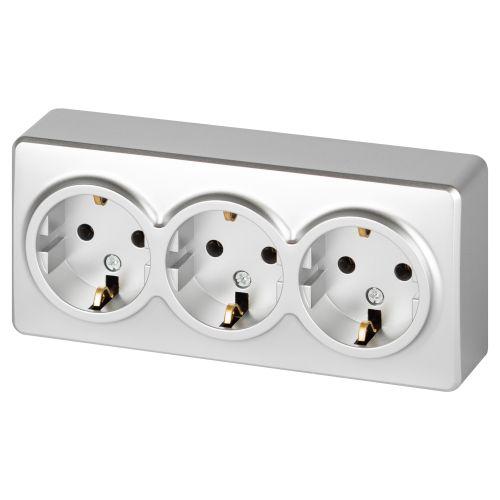 Б0063010 | Розетка 3-м ОП Эксперт 11-2208-03 16А IP20 250В 3х2P+E Schuko с заземл. алюм. Эра