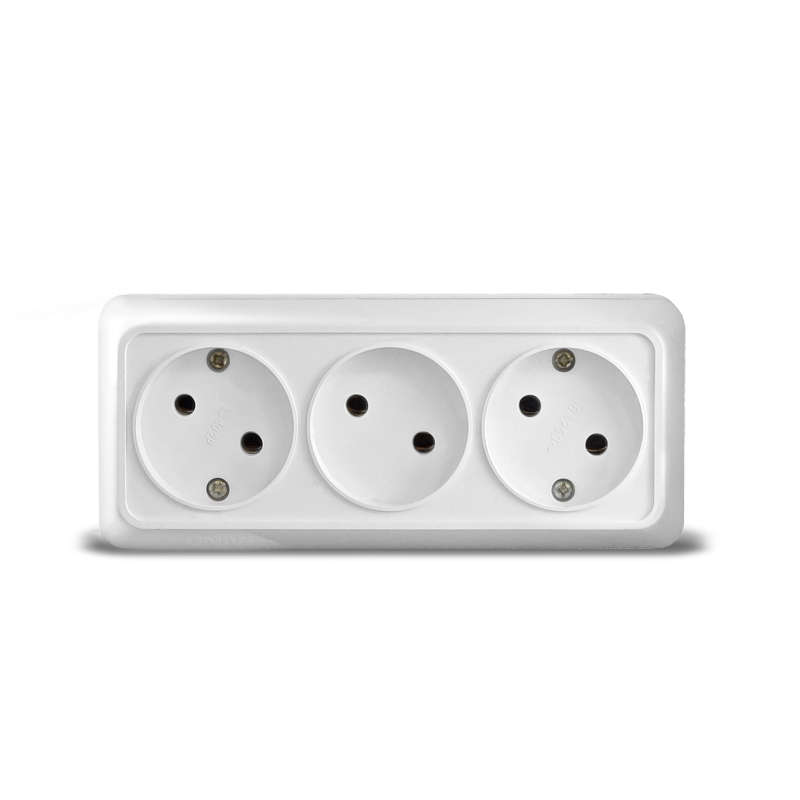 Розетка 3-м ОП Олимп 16А IP20 без заземл. бел. UNIVersal 1160